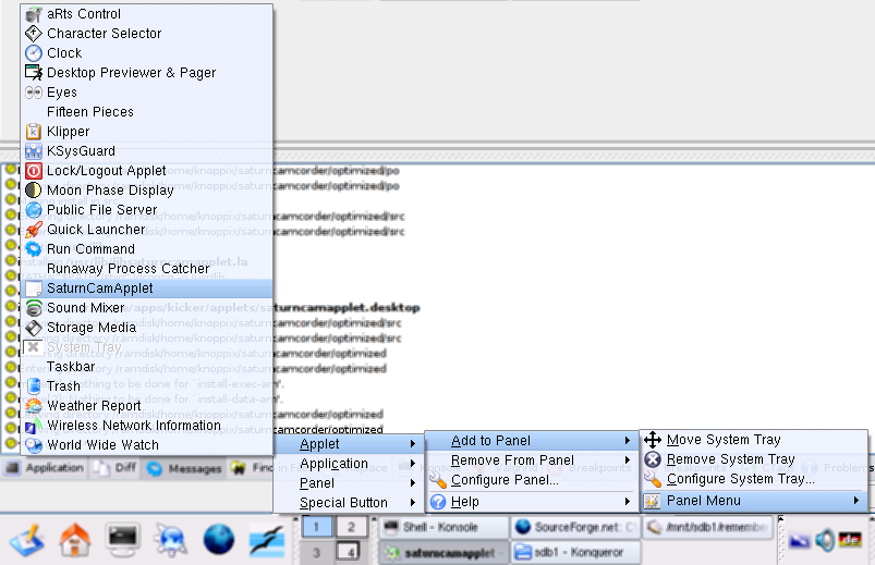 Easily add the SaturnCamApplet to your KDE kicker bar