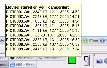 Move the mouse over the digit to get some information about the movies on your camcorder