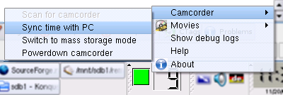 Switch to mass storage mode to access your camcorder with the konqueror like any USB hard drive.